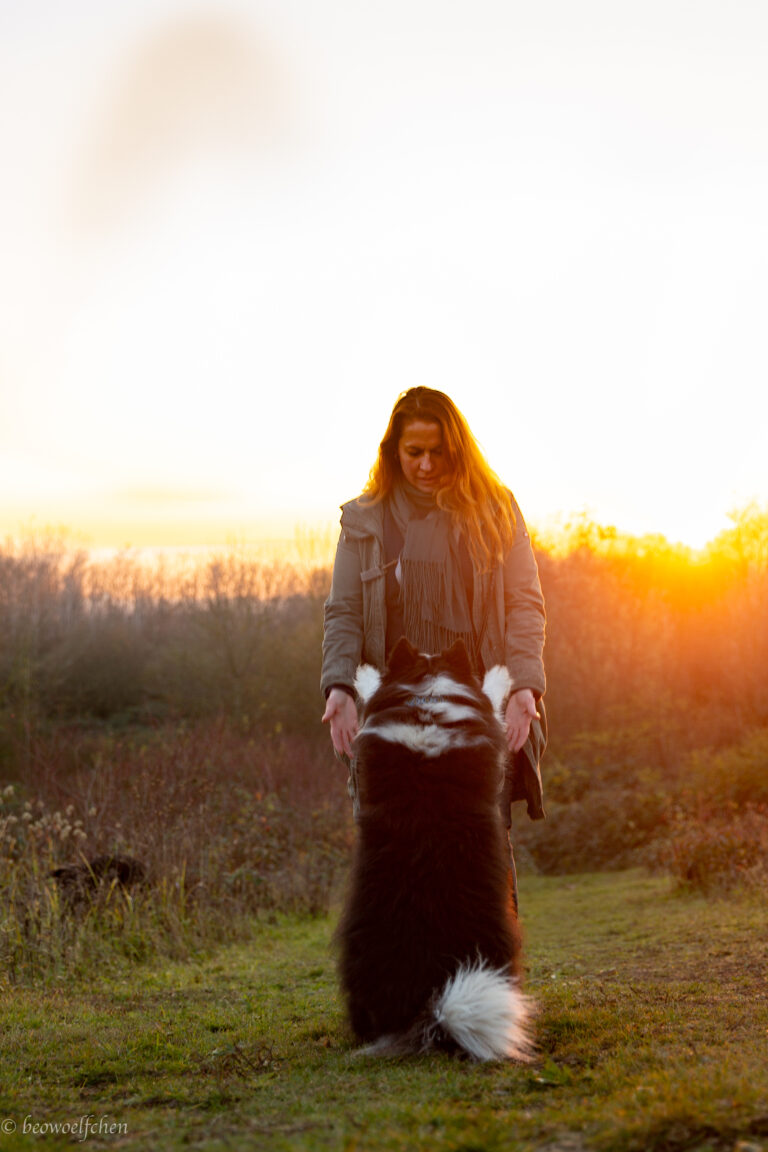 Zu aller erst: Das Flusentier ist kein Border Collie, sondern stammt aus Rumänien, genauer gesagt aus der Smeura , Europas größtem Tierheim. Sie wurde mir 2010 von einer befreundeten Tierheimleiterin geschenkt, da war Fluse ca. 3 Jahre alt. Sie begleitet mich oft zu den Trainings, verbringt die Unterrichtszeit gerne auf dem Rücken liegend und schaut sich das Geschehen aus einer anderen Perspektive an. Sie ist der geduldigste Hund, den ich je getroffen habe und eine sehr angenehme Begleiterin.